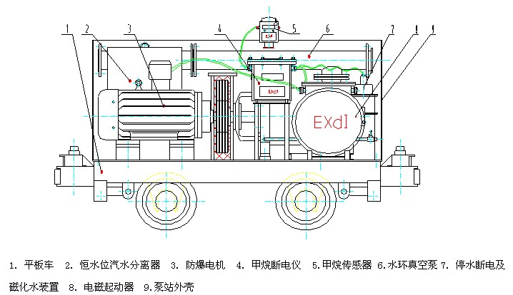 礦用移動(dòng)式瓦斯抽放泵站的所有設(shè)施全部安裝在一個(gè)平板礦車上,不需要重新解體裝配,但在使用時(shí)需要注意以下幾點(diǎn):
