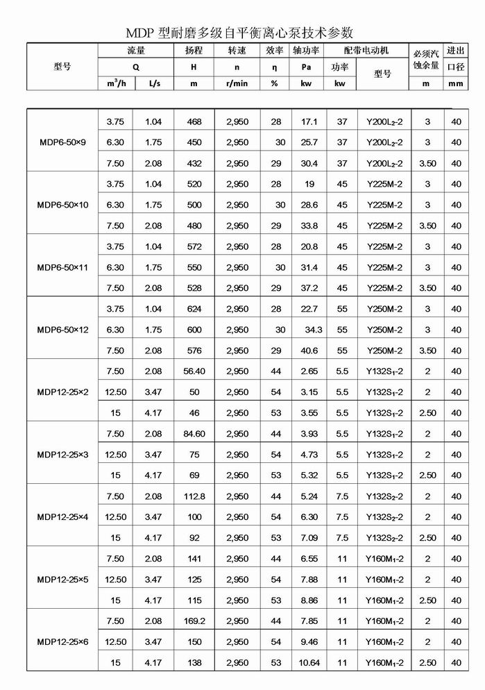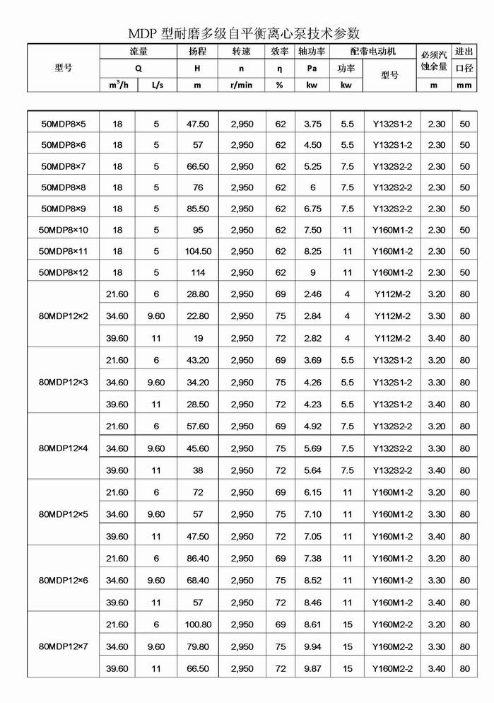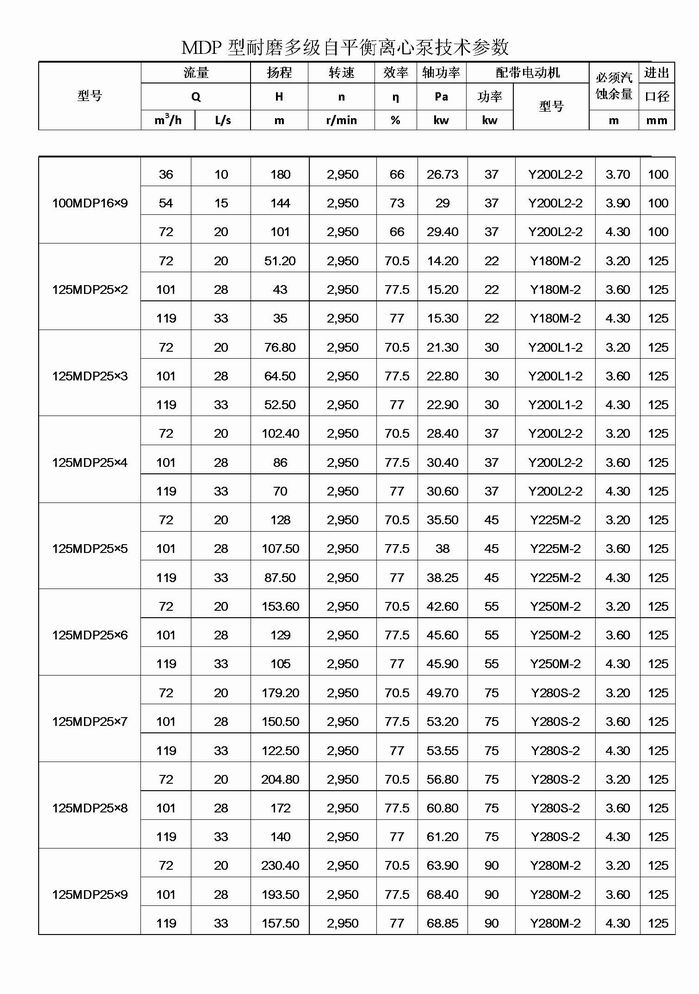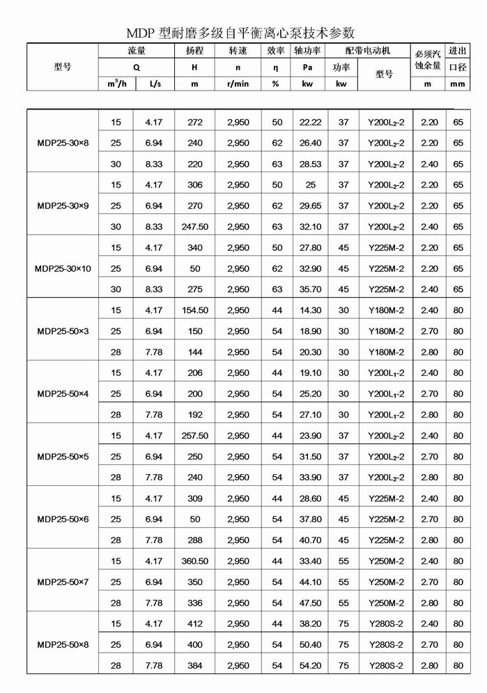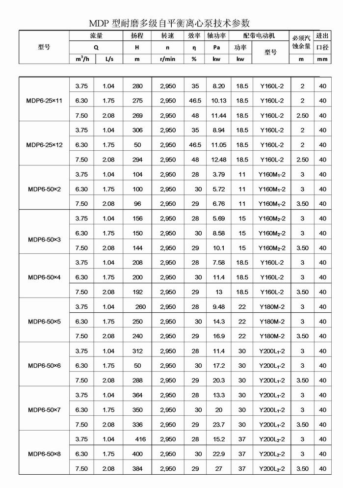 MD(P)平衡型煤礦用耐磨多級離心泵是我公司在引進(jìn)、消化、吸收先進(jìn)技術(shù)基礎(chǔ)上研制開發(fā)成功的,該產(chǎn)品不僅效率高、汽蝕性能好、關(guān)鍵是運行平穩(wěn)可靠。適用于煤碳,礦山、工廠及其它場合輸送固體顆粒含量不大于1.5%(粒徑小于0.5mm)、溫度不大于40℃的中性礦井水和其它類似的污水。