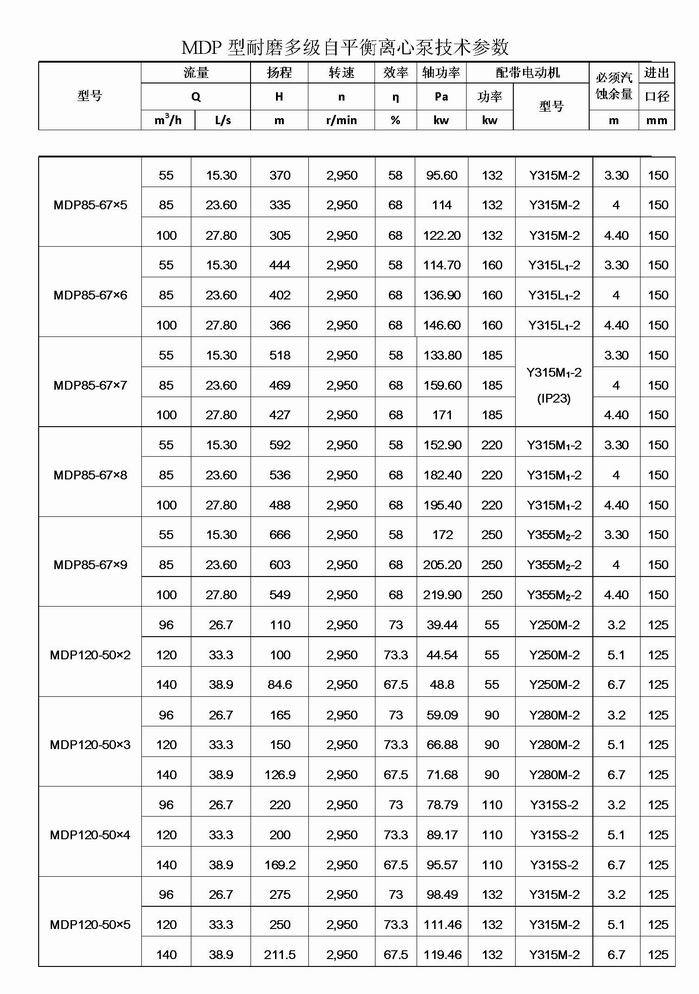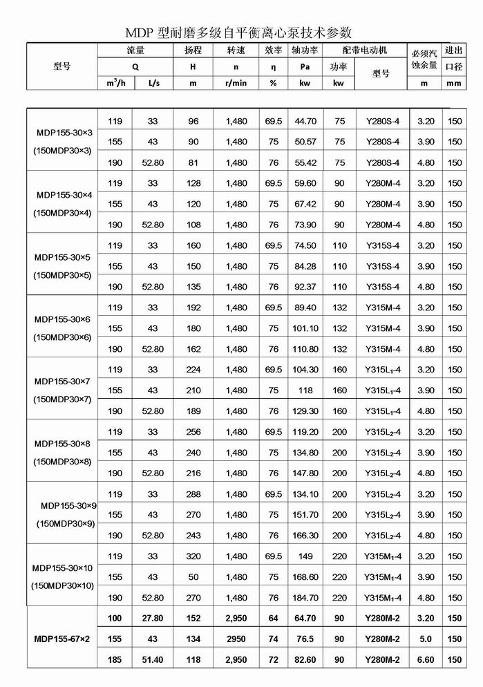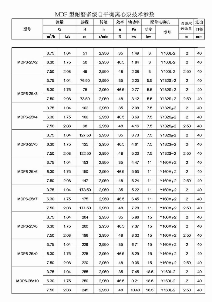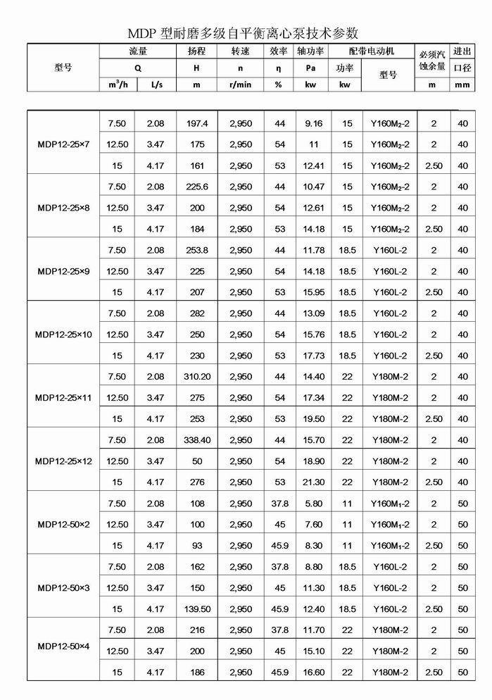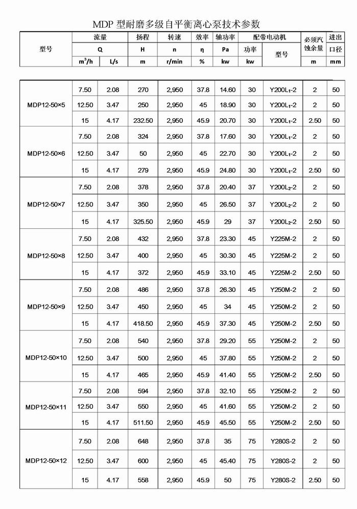 MD(P)平衡型煤礦用耐磨多級離心泵是我公司在引進(jìn)、消化、吸收先進(jìn)技術(shù)基礎(chǔ)上研制開發(fā)成功的,該產(chǎn)品不僅效率高、汽蝕性能好、關(guān)鍵是運行平穩(wěn)可靠。適用于煤碳,礦山、工廠及其它場合輸送固體顆粒含量不大于1.5%(粒徑小于0.5mm)、溫度不大于40℃的中性礦井水和其它類似的污水。