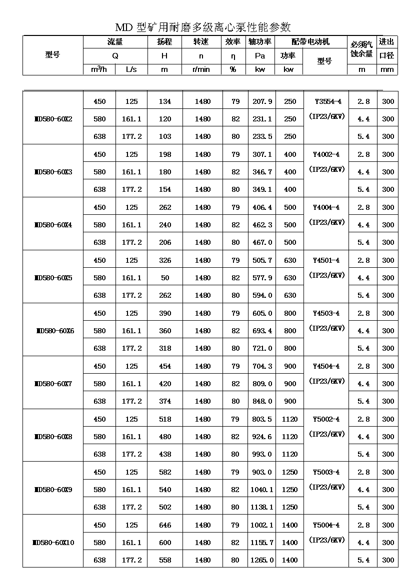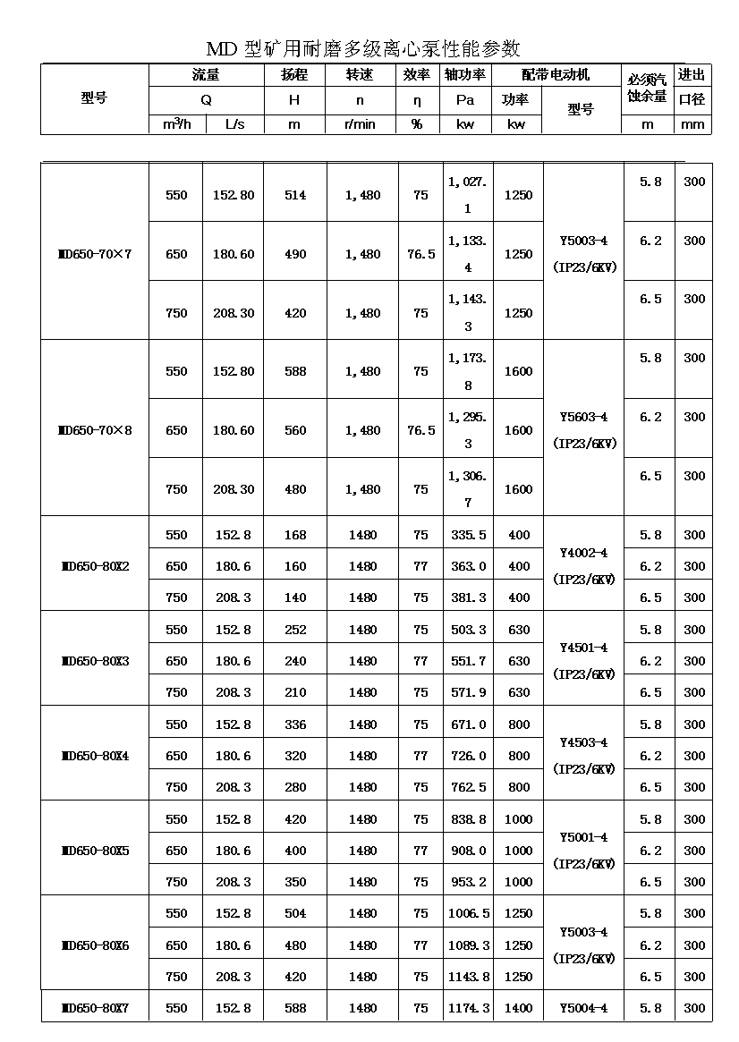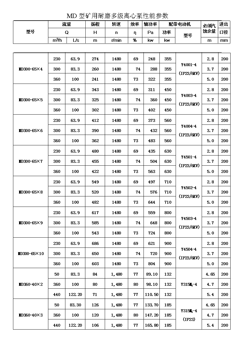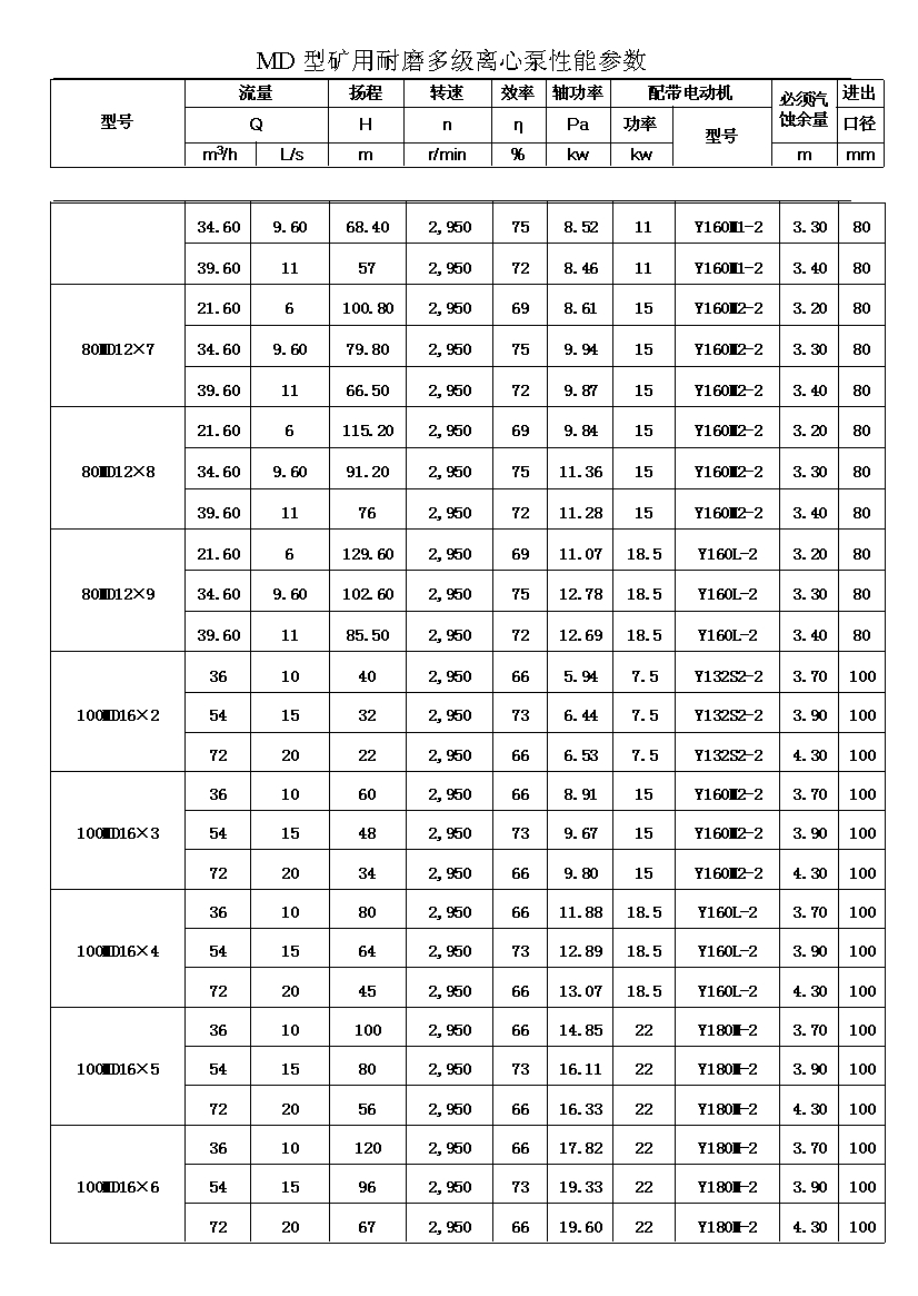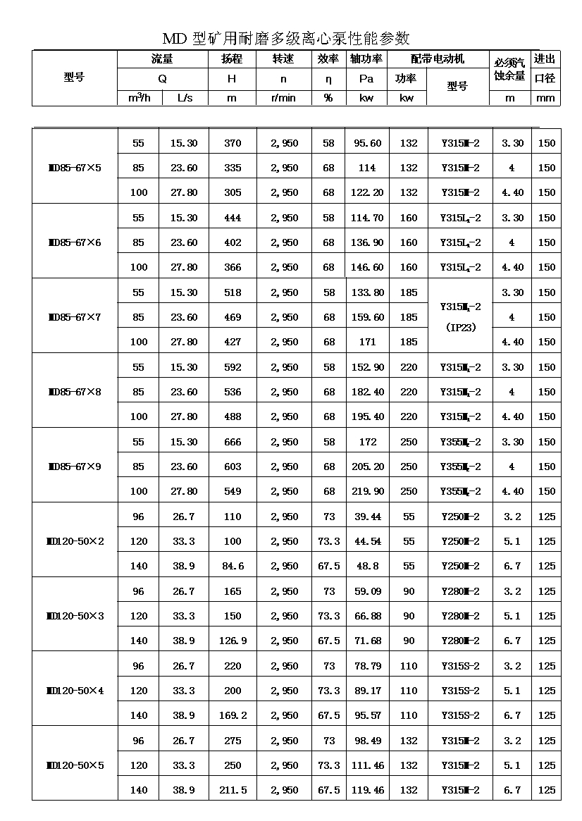 注:D(DF多級耐腐蝕離心泵、DY多級離心油泵、MD多級耐磨離心泵)80-30為習慣表示方法,其中80表示泵吸入口直徑為80mm,30表示泵設(shè)計點單級揚程為30m,其它含義與上述表示方法相同。