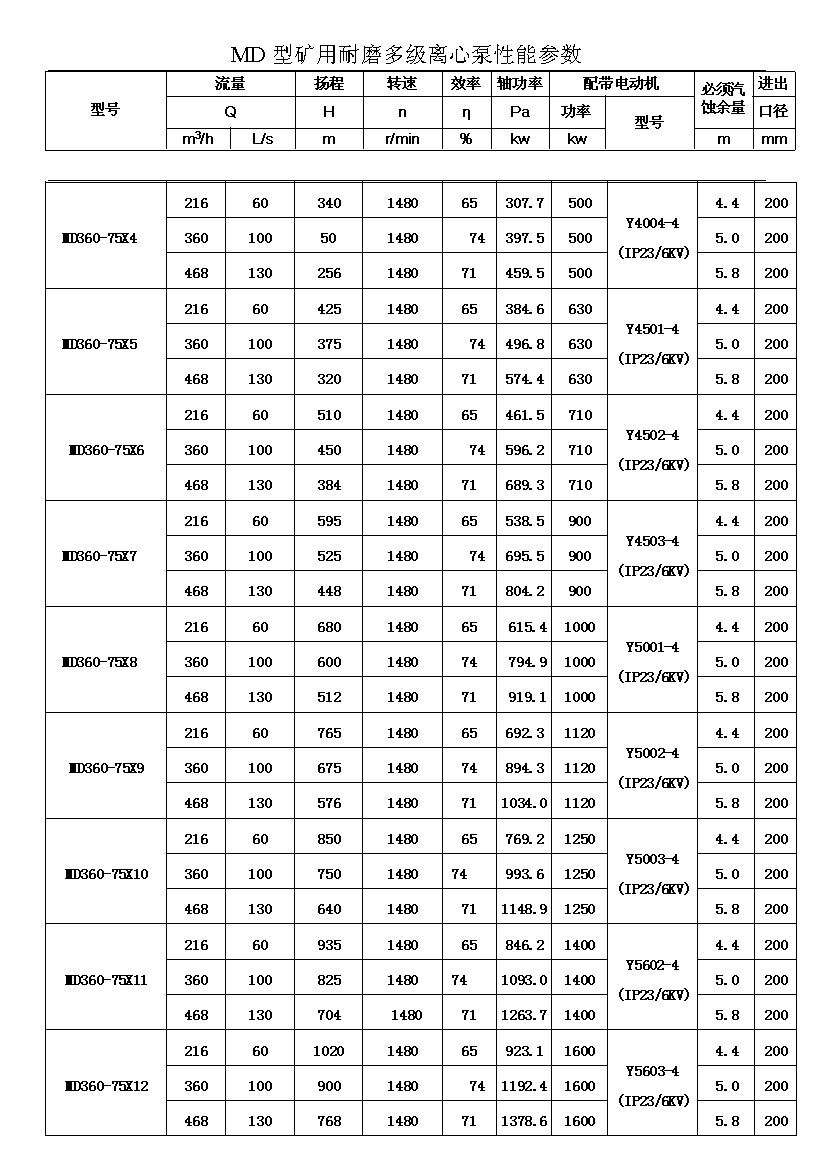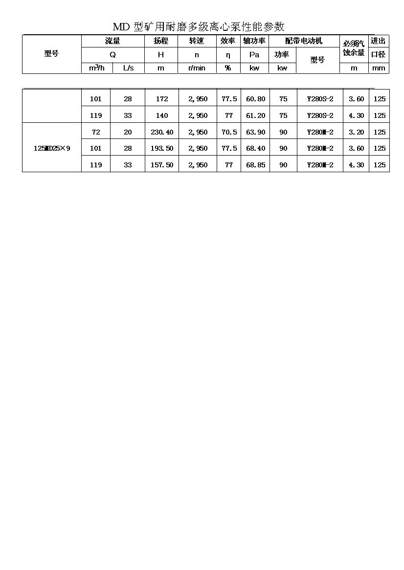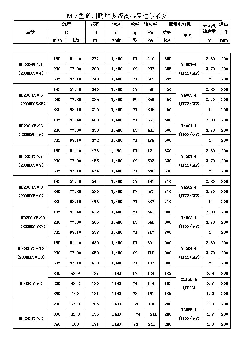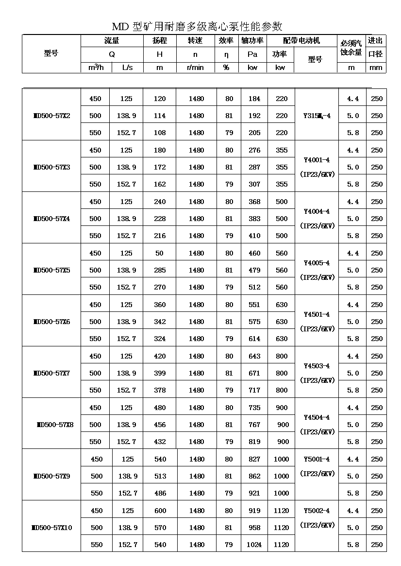 注:D(DF多級耐腐蝕離心泵、DY多級離心油泵、MD多級耐磨離心泵)80-30為習慣表示方法,其中80表示泵吸入口直徑為80mm,30表示泵設(shè)計點單級揚程為30m,其它含義與上述表示方法相同。