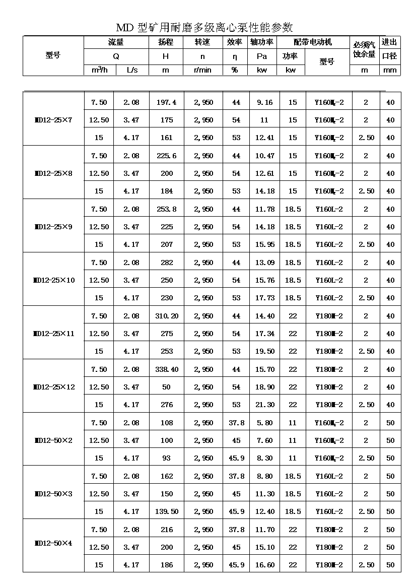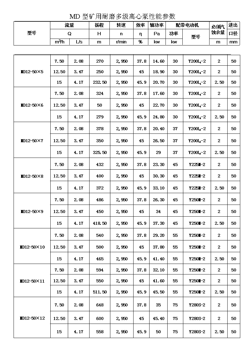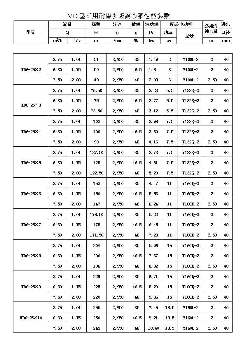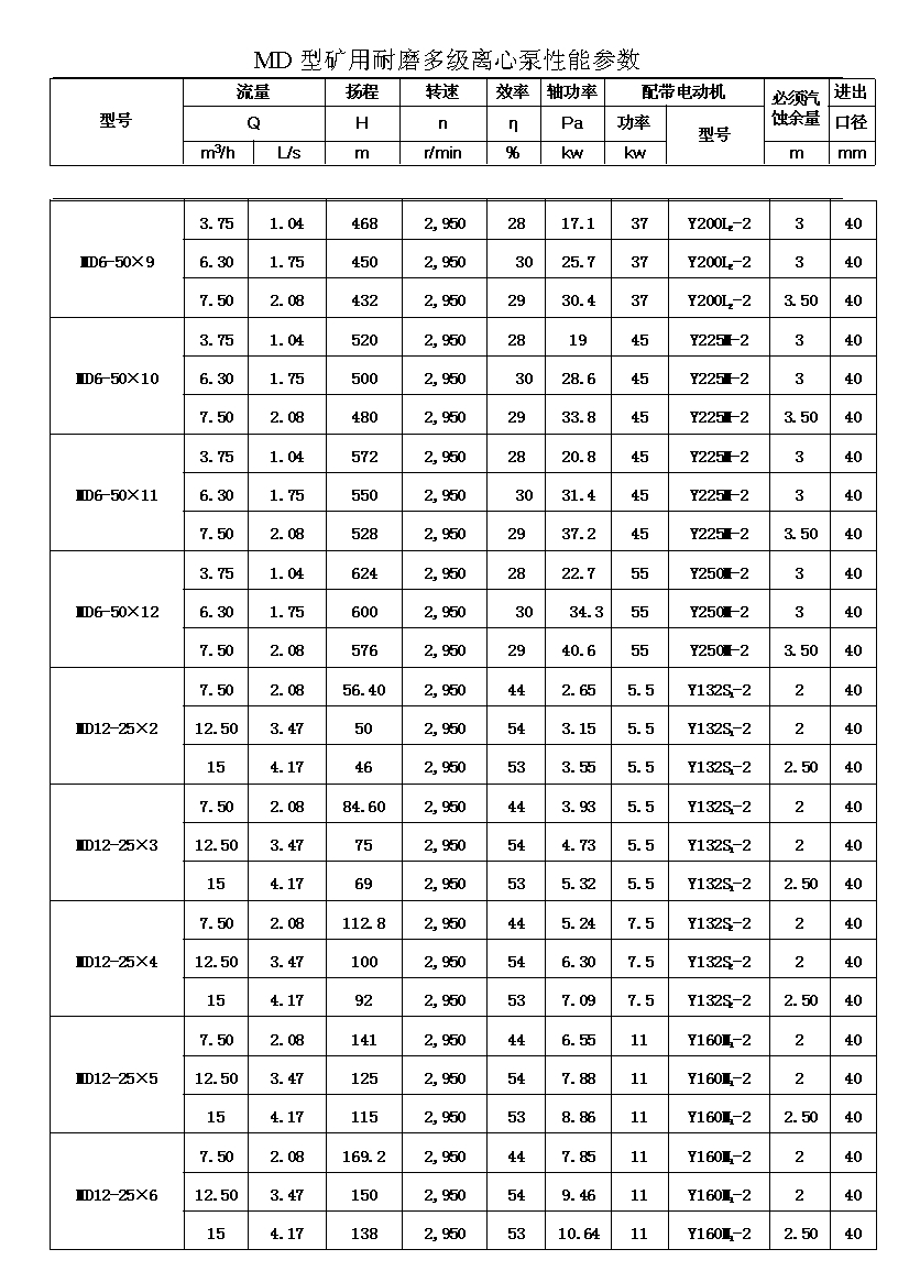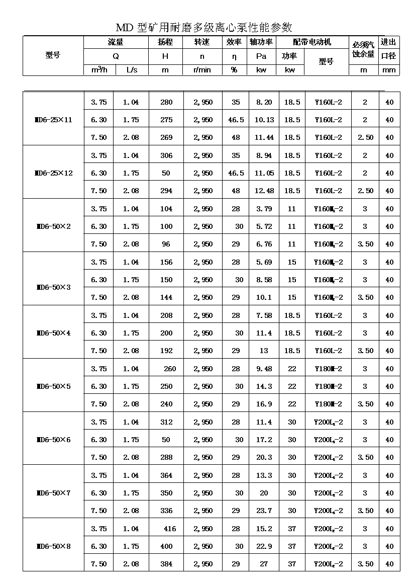 MD型耐磨多級離心泵,是我公司在D型單吸多級清水離心泵的基礎(chǔ)上,改造設(shè)計的一種耐磨多級離心泵。MD型耐磨多級離心泵,高效節(jié)能,耐磨可靠,壽命長, 特別適用于礦山排水,抽送固體顆粒含量不大于1.5%(顆粒直徑小于0.5毫米)的礦井水及其他類似液體,液體溫度不高于80度。
