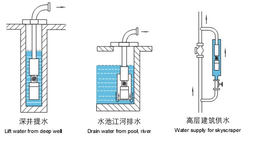 1、電機(jī)、水泵一體,潛入水中運(yùn)行,安全可靠。