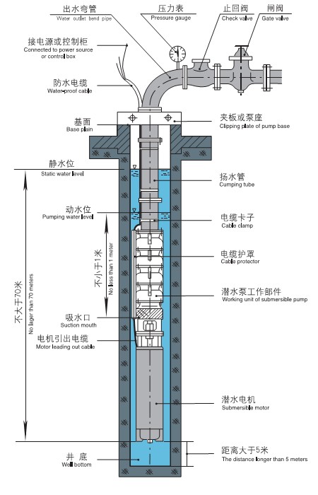 2、對(duì)井管、揚(yáng)水管無(wú)特殊要求(即:鋼管井、灰管井、土井等均可使用;在壓力許可下、鋼管、膠管、塑料管等均可作揚(yáng)水管使用)。