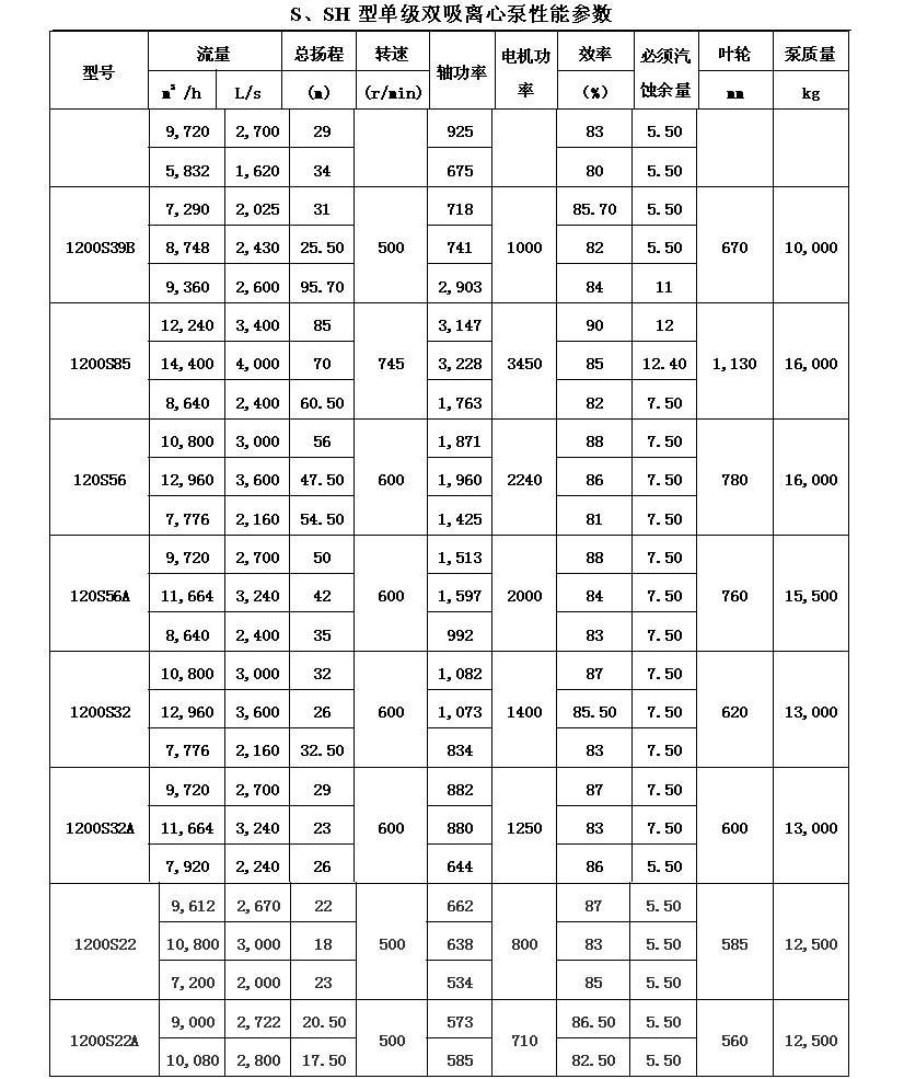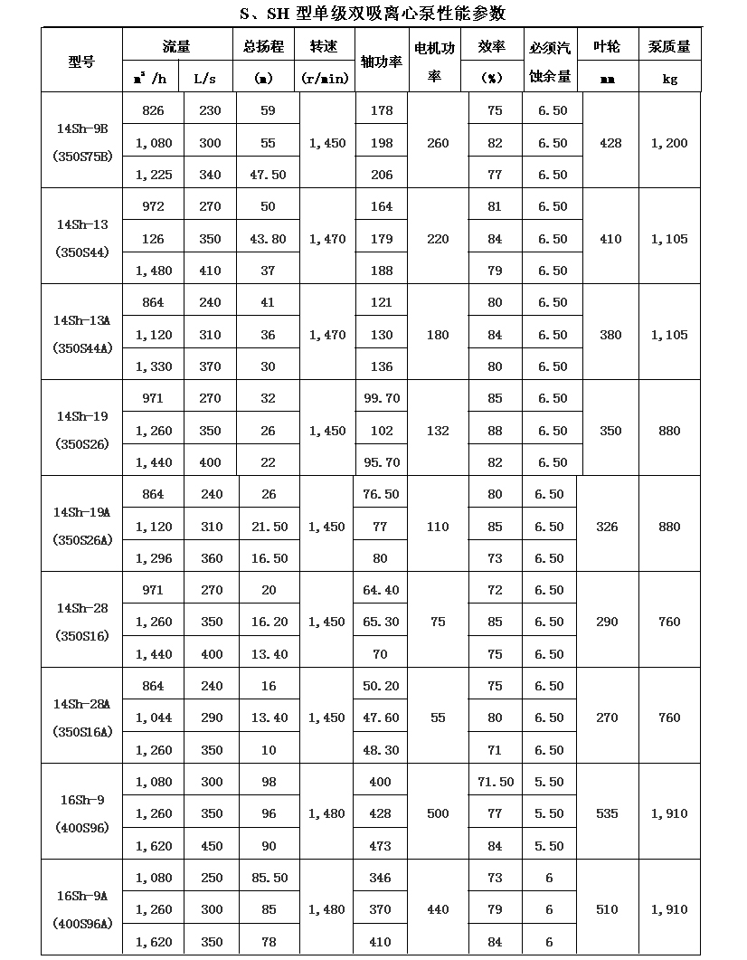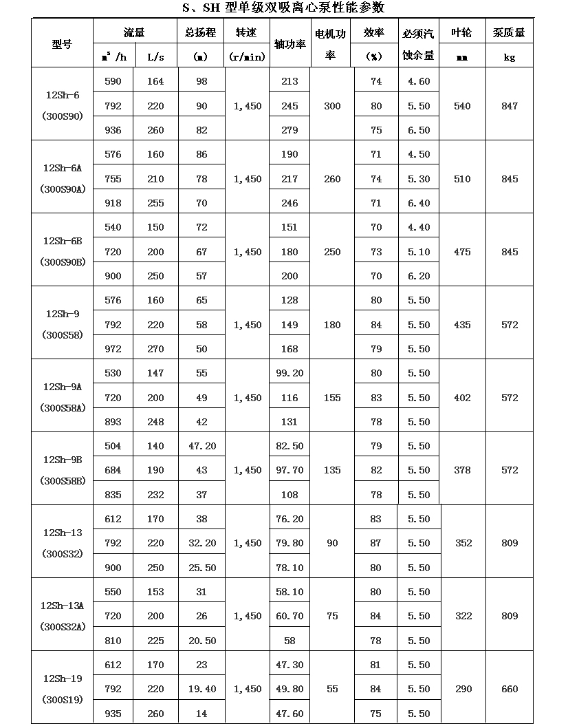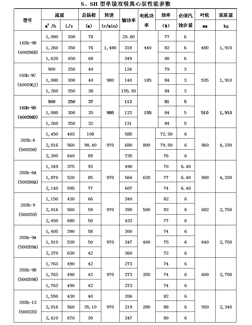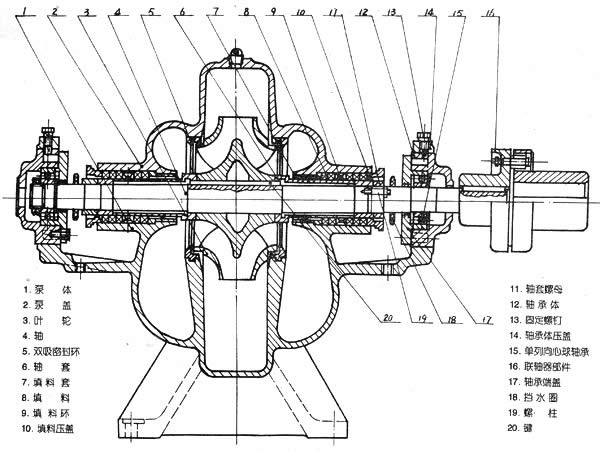 吸離心泵、S,SH型單級雙吸泵殼中開之離心泵,供抽送清水或物理化學(xué)類似于水的其它液體之用。被輸送液體溫度不得高于80℃。